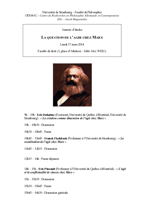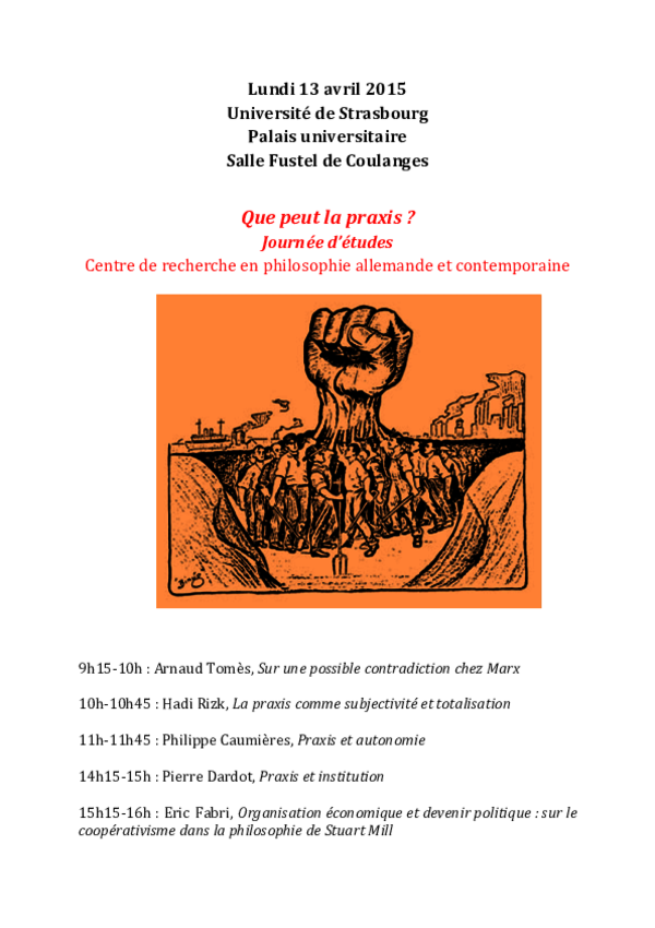 10 avril 2014 Organisation : Franck Fischbach & Anne Merker Programme