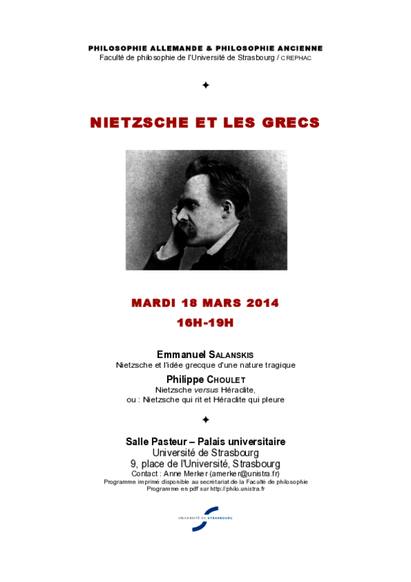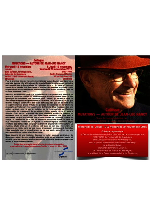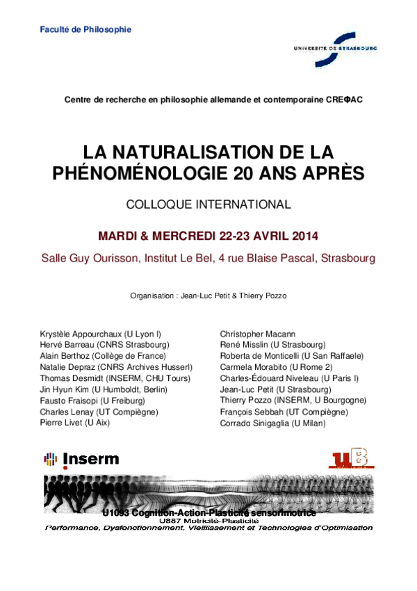 Organisation : Colloque organisé par le Centre de recherches en philosophie allemande et contemporaine (CREPHAC) de l'Université de Strasbourg et le Collège International de Philosophie. Programme