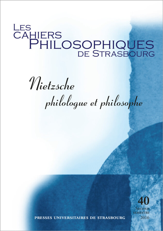 « Philosophia facta est, quae philologia fuit – Introduction à Nietzsche, philologue et philosophe », dans les Actes du colloque franco-allemand Nietzsche, philologue et philosophe, éd. A. Merker, Les Cahiers philosophiques de Strasbourg, 40, second semestre 2016.