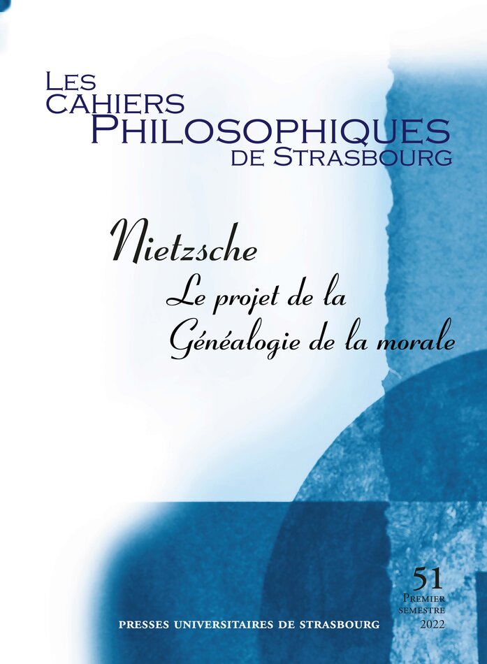 « Nietzsche, la morale et la Grèce : perspectives ouvertes par la Généalogie de la morale », Les Cahiers philosophiques de Strasbourg, 51, premier semestre 2022, p. 205-251.